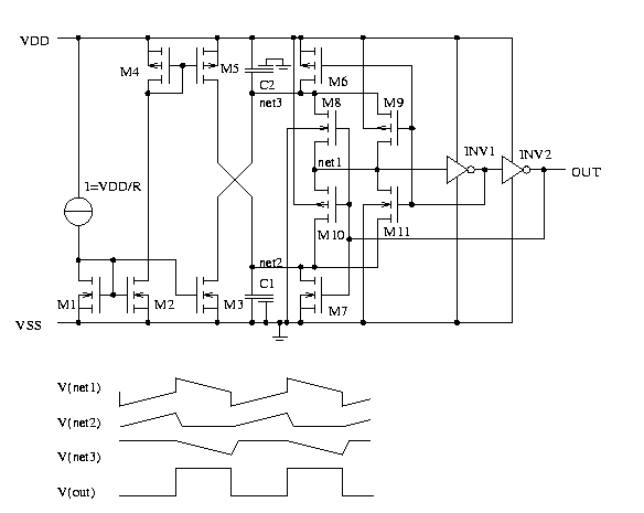 are alwas charged from 0V to the threshold of inverter INV1 or from VDD