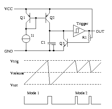 the trigger stage to 0V (or almost 0V) the oscillator runs in mode 1. If