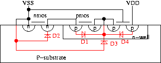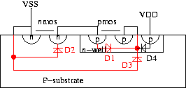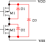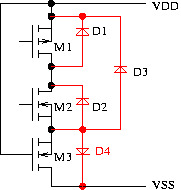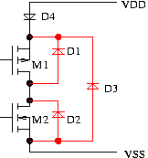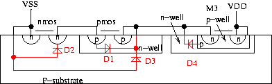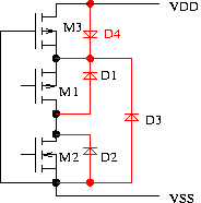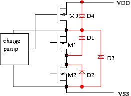 This way the drop under normal operating conditions can be reduces. Latch up risk now depends on the currents applied during latch up tests and the Rdson of M3.