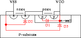 Figure 2 illustrates where in the cross section the diodes D1 to D3 can be found.