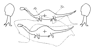 Abbildung 3.1: Saurier und Vogel stellen Proton und Elektron dar