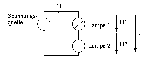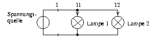 Abbildung 2.4: Stromkreis mit zwei in Reihe geschaltetetn Lampen