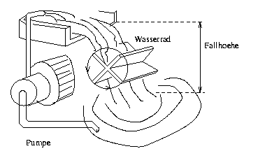 Hier wurde die Pumpe durch eine Spannungsquelle ersetzt. Das Wasserrad