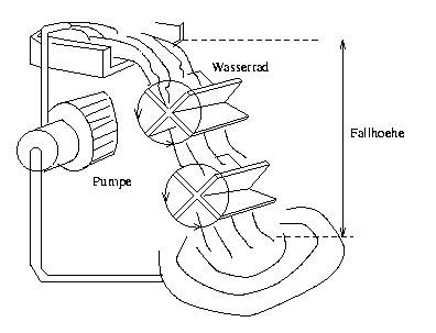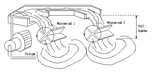 Abbildung 2.3: Wasserkreislauf mit zwei in Reihe geschalteten Wasserraedern